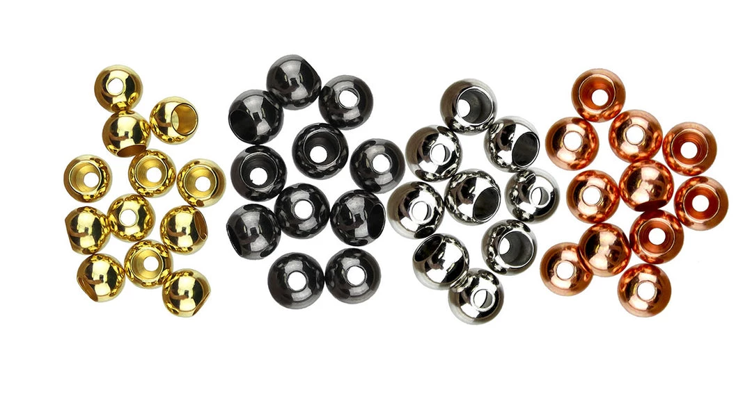 Weighted metal beads which are countersunk on one side to allow them to slide over the hook bend. 25 per pack.